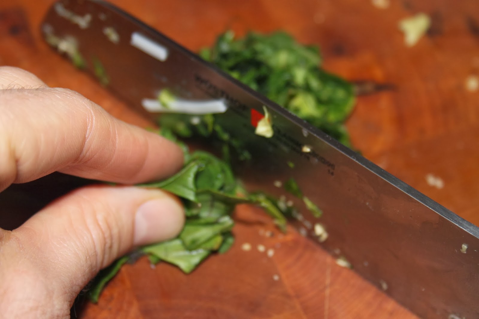 - Puis l’ail haché. Coupez le piment oiseau en fines tranches puis ajoutez progressivement en goûtant à chaque fois pour être sûr de tomber sue la bonne dose qui vous convient !