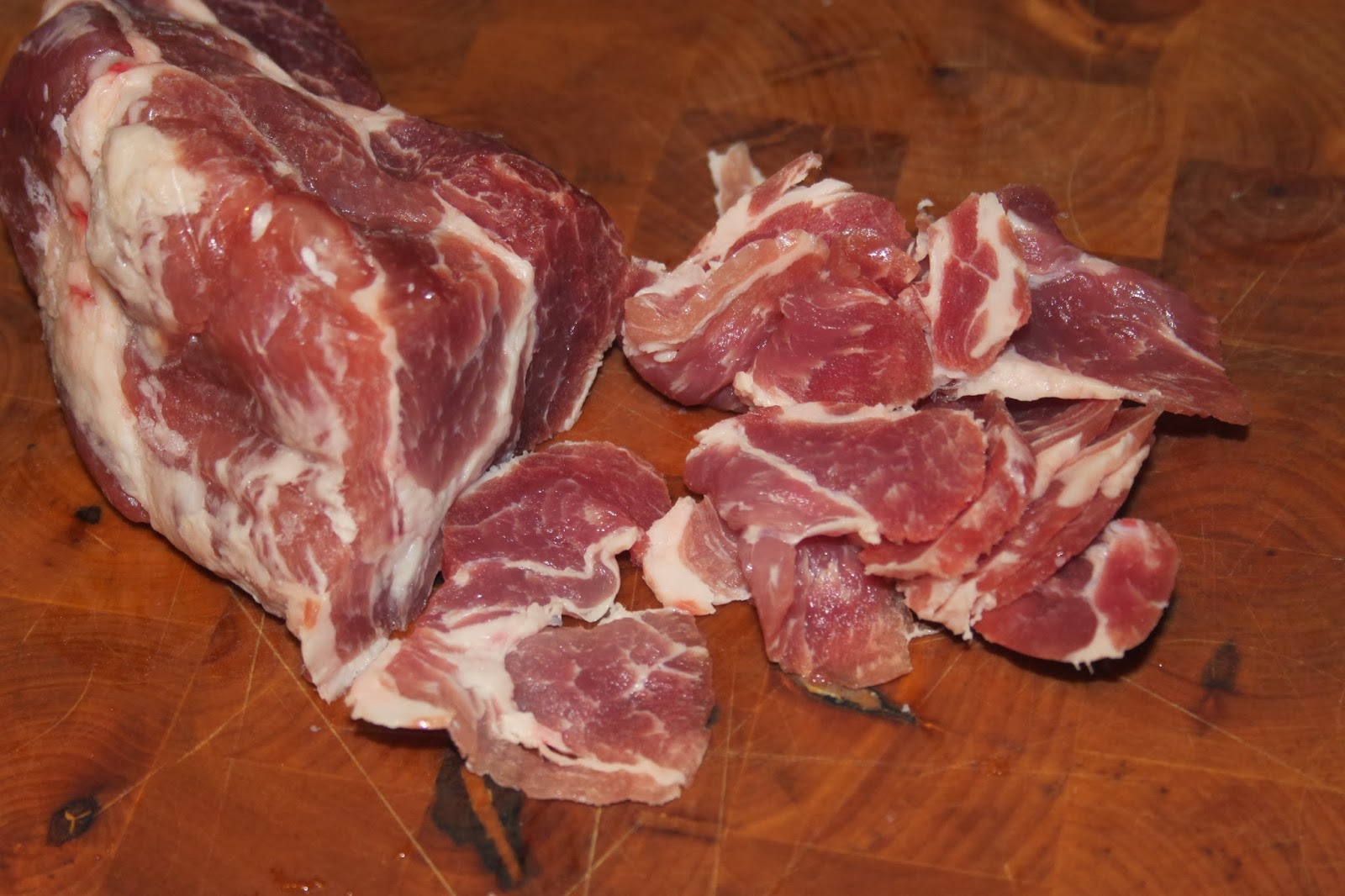 - Tout d’abord mettez au congélateur l’échine de porc pour qu’elle soit plus facile à trancher. Vous pourrez alors la couper en très fines tranches sans aucun effort.