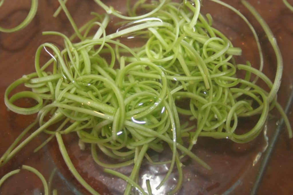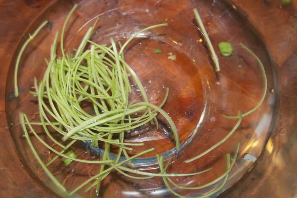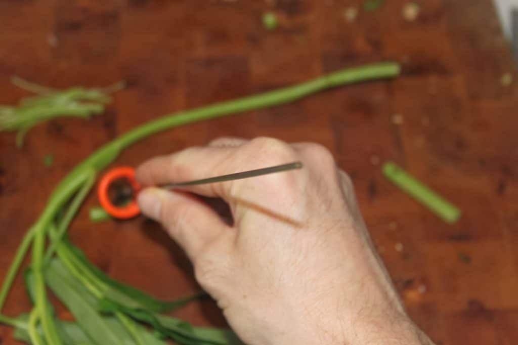 - Voilà le moment que j’adore: la présentation d’un nouvel instrument de cuisine improbable !! Lavez et ôtez les feuilles des liserons d’eau.
