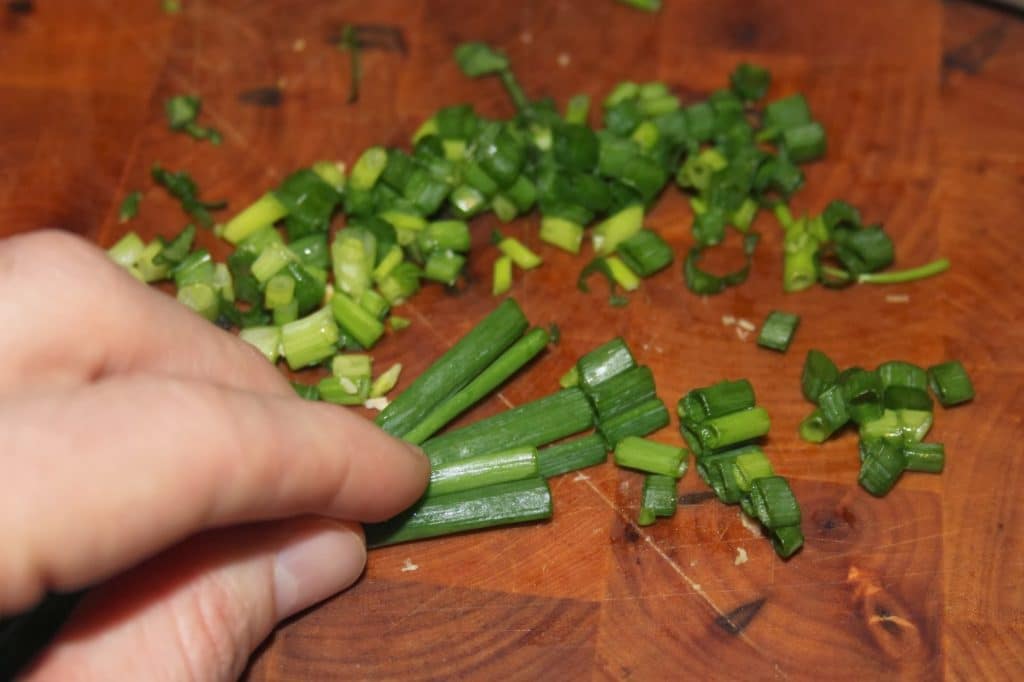 - Hachez l’ail et l’échalote (il faut en gros autant d’ail que d’échalote).