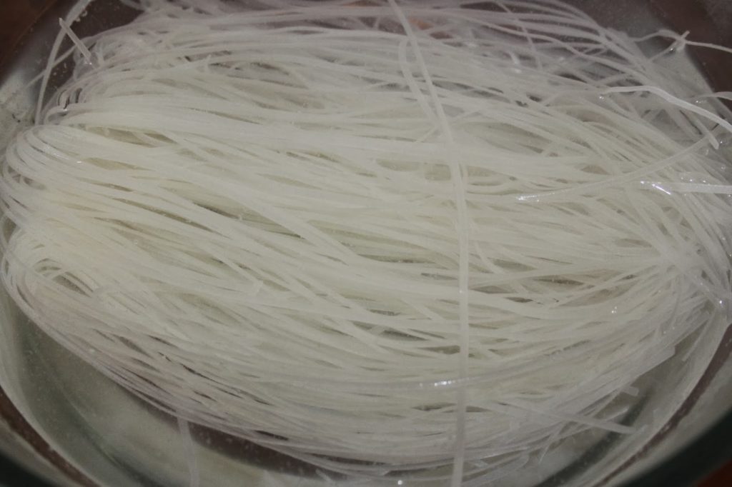 - Dans un grand bol d’eau très chaude, laissez tremper vos nouilles de riz. Regardez tout de même le paquet pour vérifier le bon mode de préparation de vos nouilles.