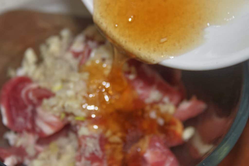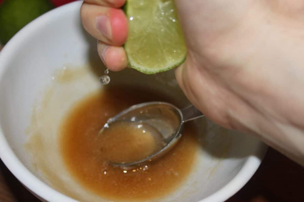 - Mélangez le miel, le nuoc mâm et l’huile.