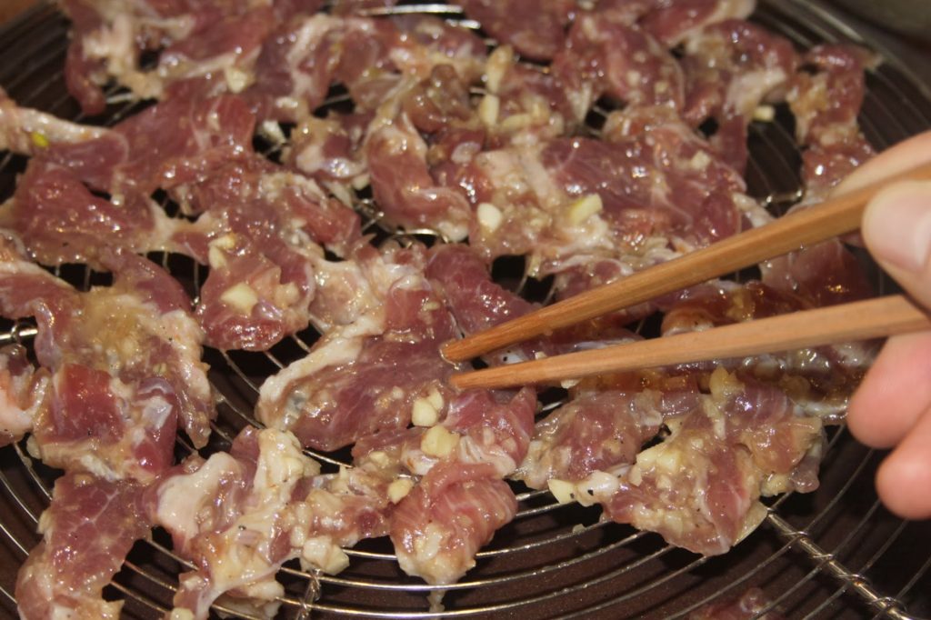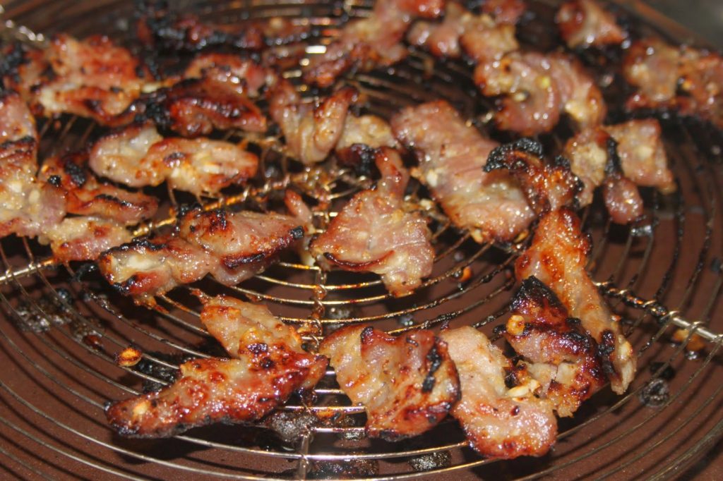 - Si vous avez un barbecue, c’est le top ! Sinon, faites comme moi, faites griller le porc dans votre four en mode grill. Placer une grille (à pâtisserie par exemple) sur un plat allant au four et disposez le porc avec la marinade.