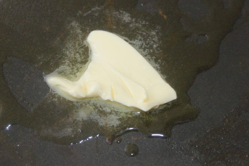 - Faites chauffer une grande poêle sur feu modéré à fort, mettez un beau morceau de beurre et un bon filet d’huile d’olive.