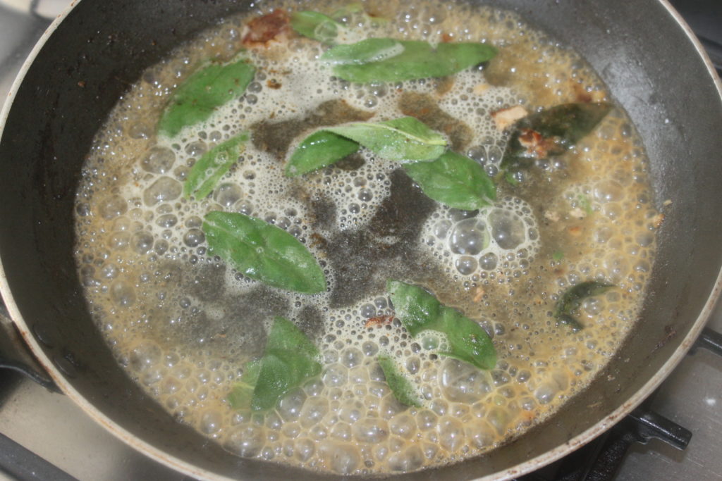 For the sauce, at the time of the white wine, you can also add more sage to further enhance the taste. You just have to remove them before serving.