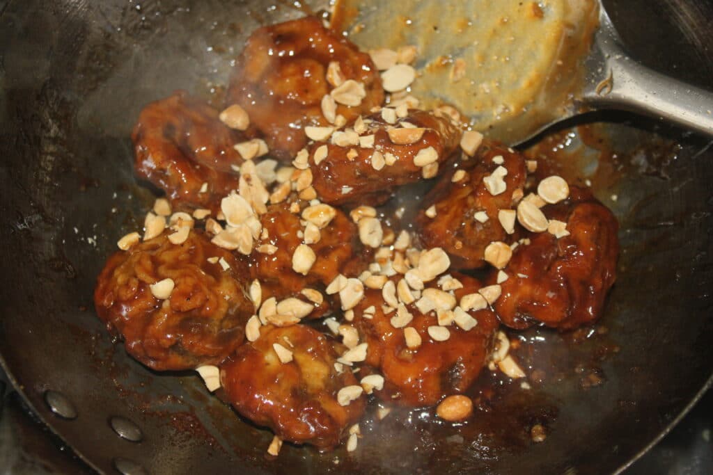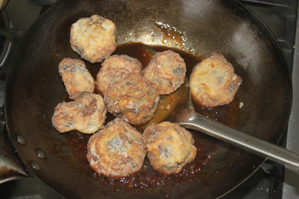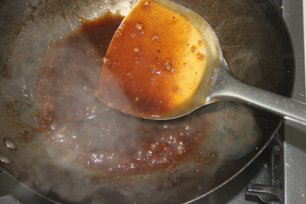 - Vous pourrez les frire une seconde fois pour un croustillant extra.Pour la sauce : versez l’huile, l’ail et le gingembre dans le wok (ou une casserole). Faites chauffer pour colorer le tout.