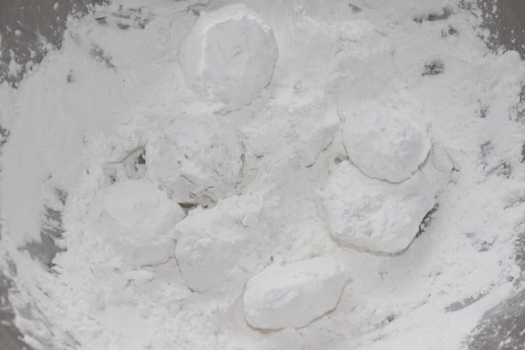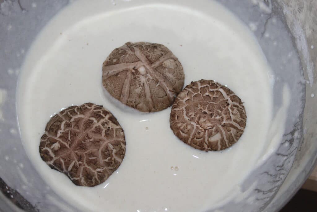 - Mélangez la farine et l’eau dans un récipient, et versez de la fécule de tapioca dans un autre. Plongez les shiitakés dans la pâte assez liquide, égouttez en partie puis placez-les dans la fécule.