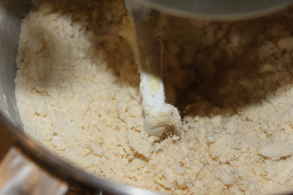 - Mélangez bien pour avoir un mélange un peu sableux. N’insistez pas trop, sinon vous aurez des shortbreads trop durs.
