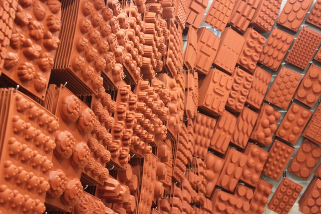 Pour mon atelier, j’ai mis plein de références de côté. Comme je le mets aussi en location à des personnes qui donnent des cours de pâtisserie et qui utilisent ce type de moules, c’est très utile d’avoir plein de choix.