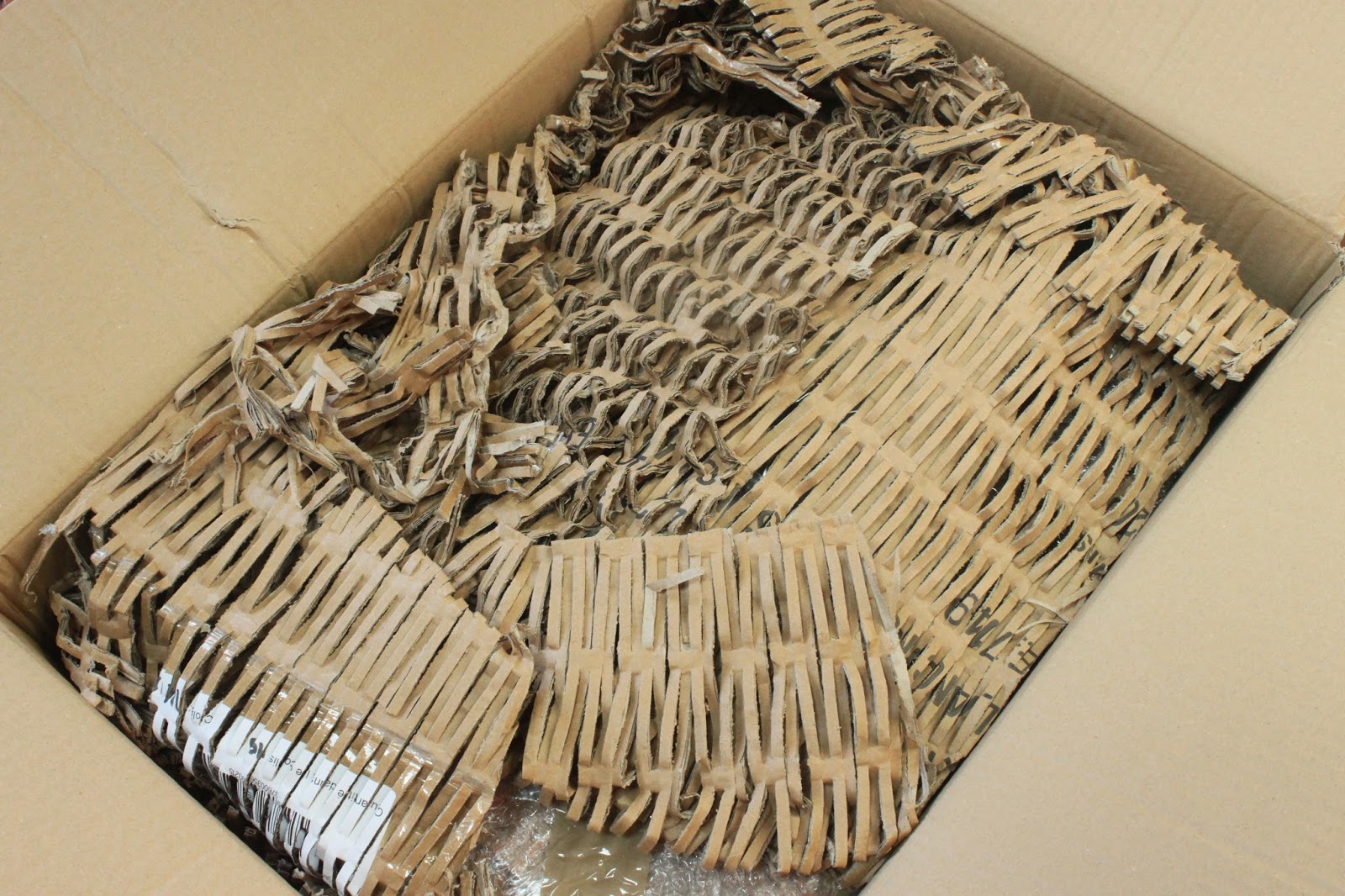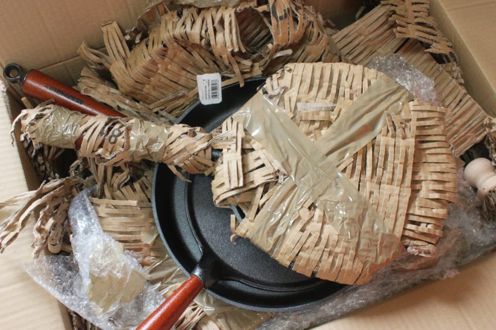 Dedans, chaque poêle est soigneusement emballée dans du carton et dans du papier bulle.