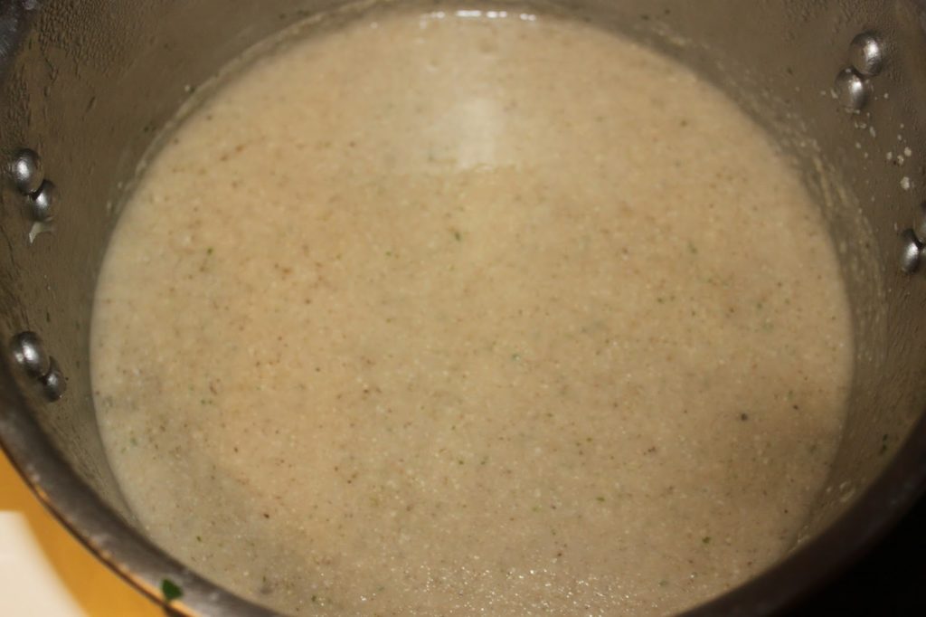 Laissez cuire 2 minutes en remuant pour éviter que le fond ne brûle. Versez le litre de bouillon de légumes.