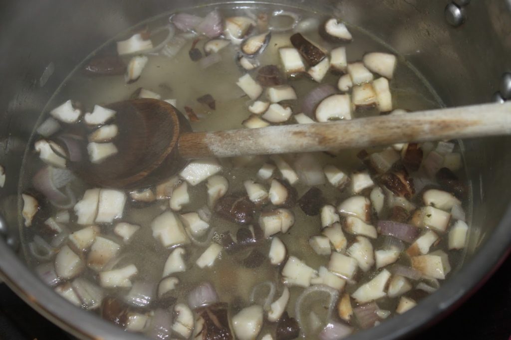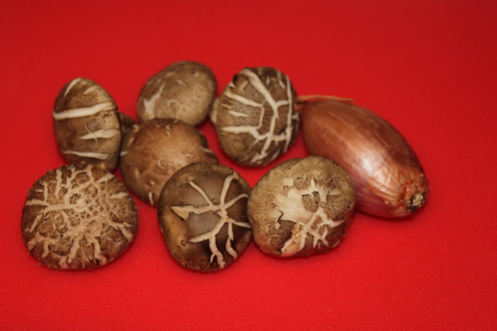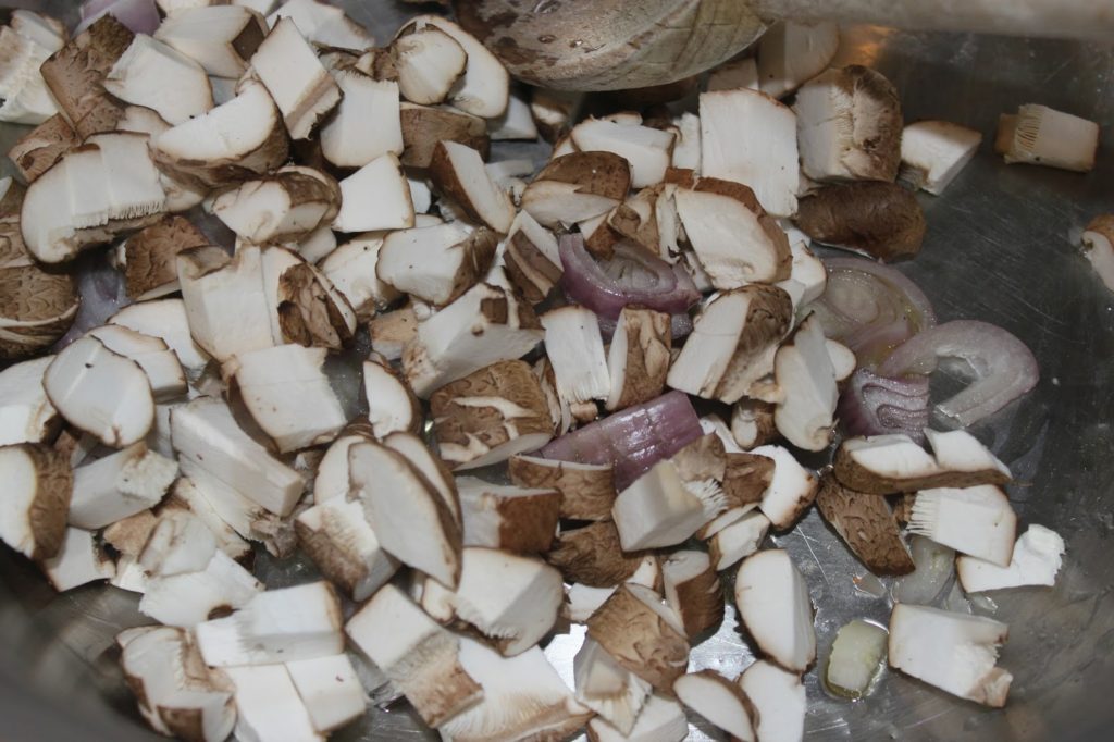 - Épluchez l’échalote et coupez les champignons en morceaux.