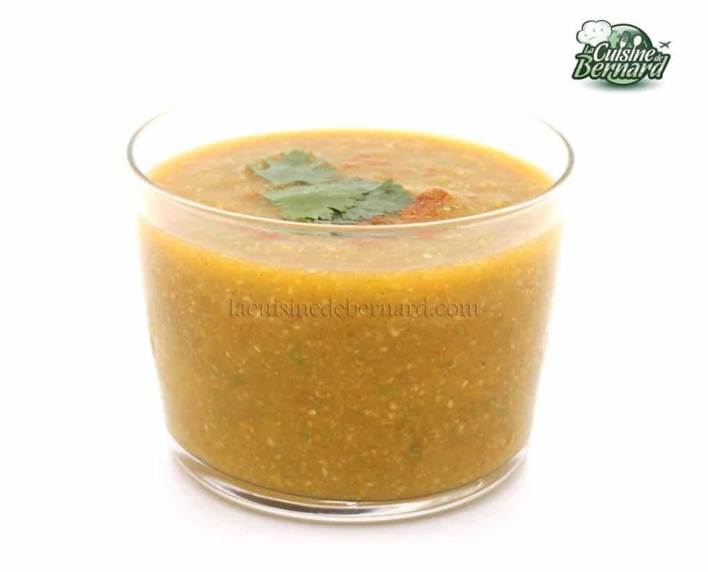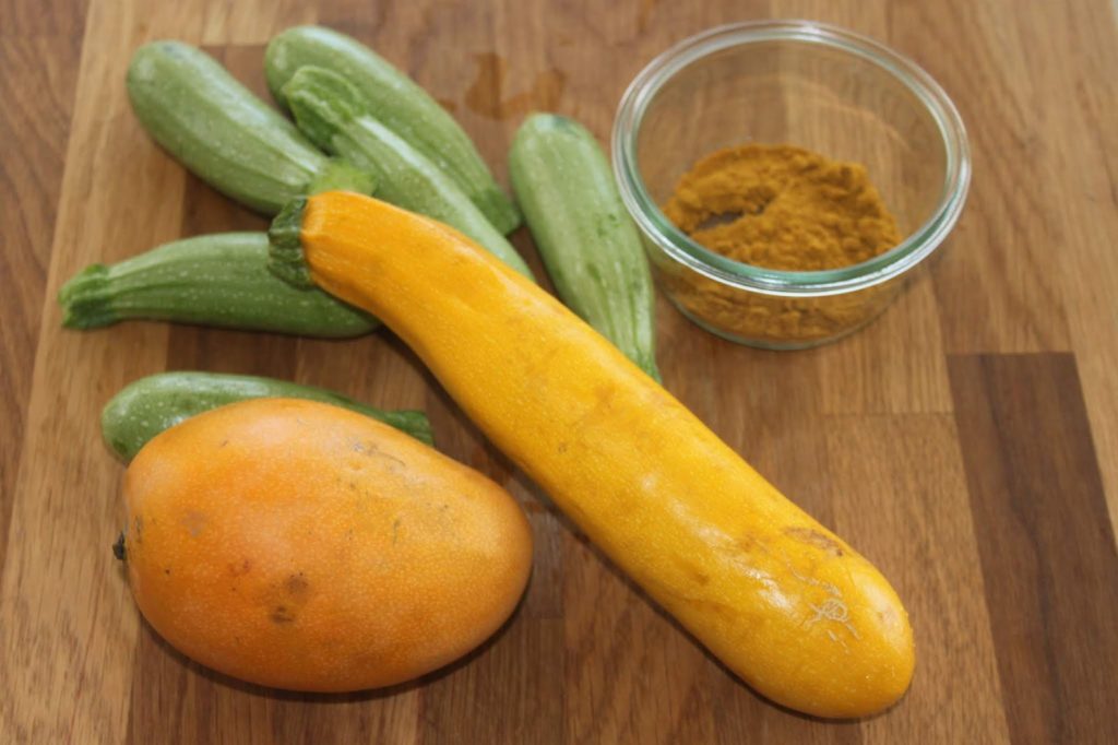 Recette de SOUPE FROIDE COURGETTE, MANGUE ET CURRY pour 4 personnes :