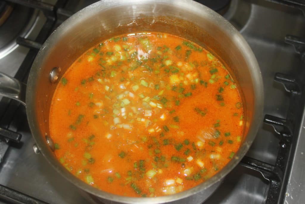 Cocer durante unos 30 minutos a fuego moderado, sin tapar. El caldo será más consistente (los cacahuetes se hincharán un poco al cocinarse).