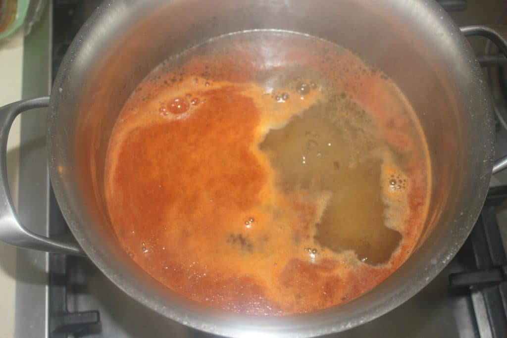 Viértalos en el caldo. Añade también el azúcar en polvo.