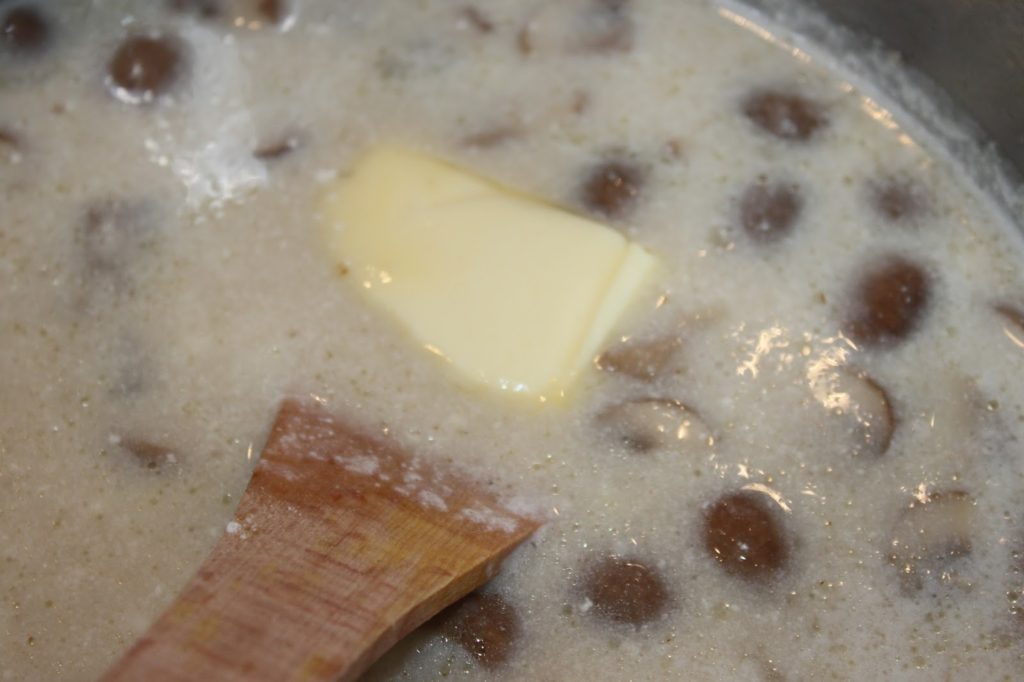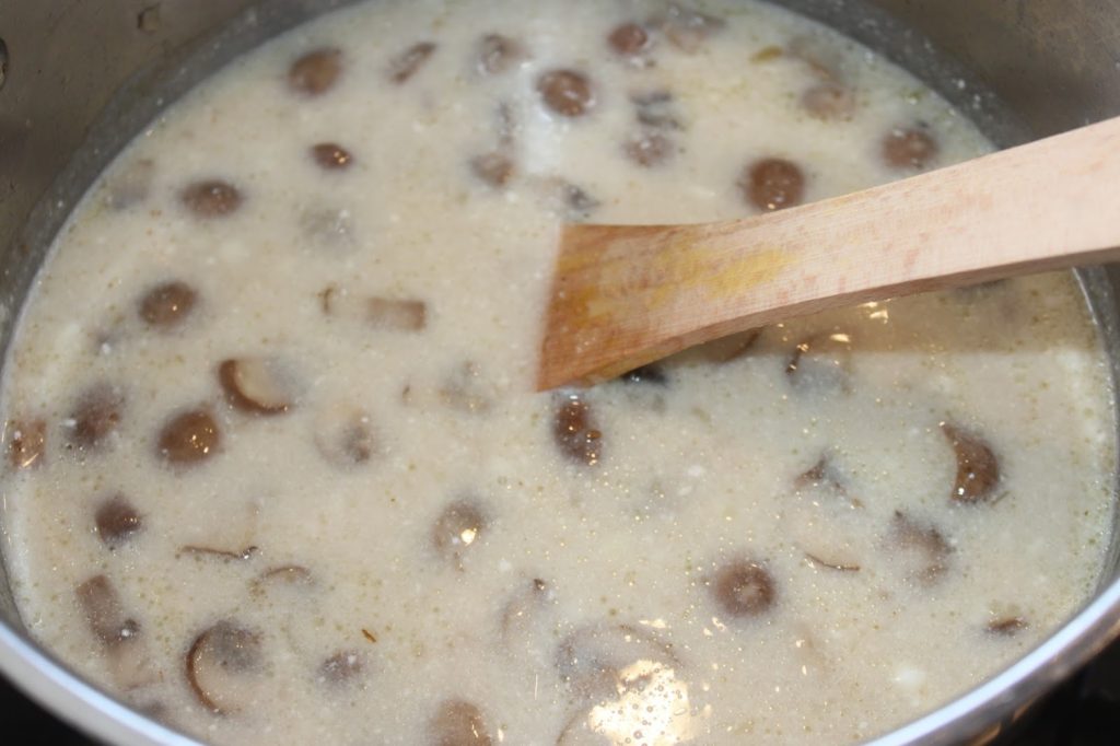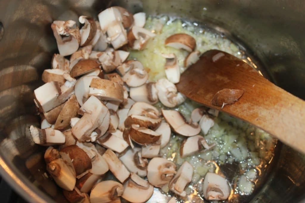 - Laissez cuire 3-4 minutes et ajoutez les champignons.