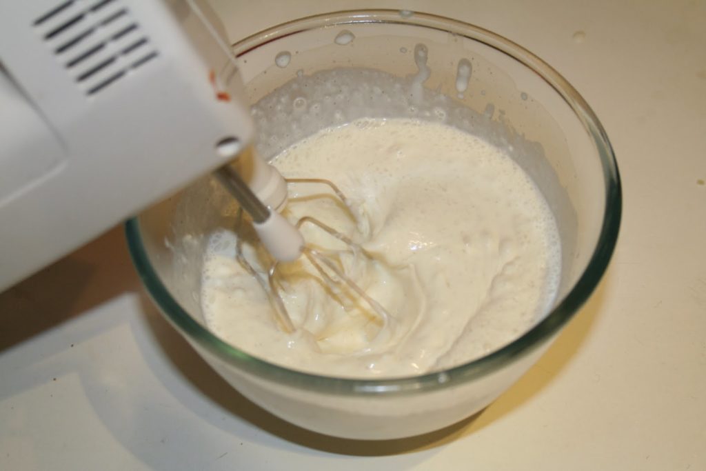 - Placer les batteurs du fouet sur celui-ci puis commençer à battre à vitesse moyenne, puis quand les ingrédients sont bien mélangés, augmenter la vitesse jusqu’à ce que la chantilly soit prise. Garnir une poche à douille de cette crème.