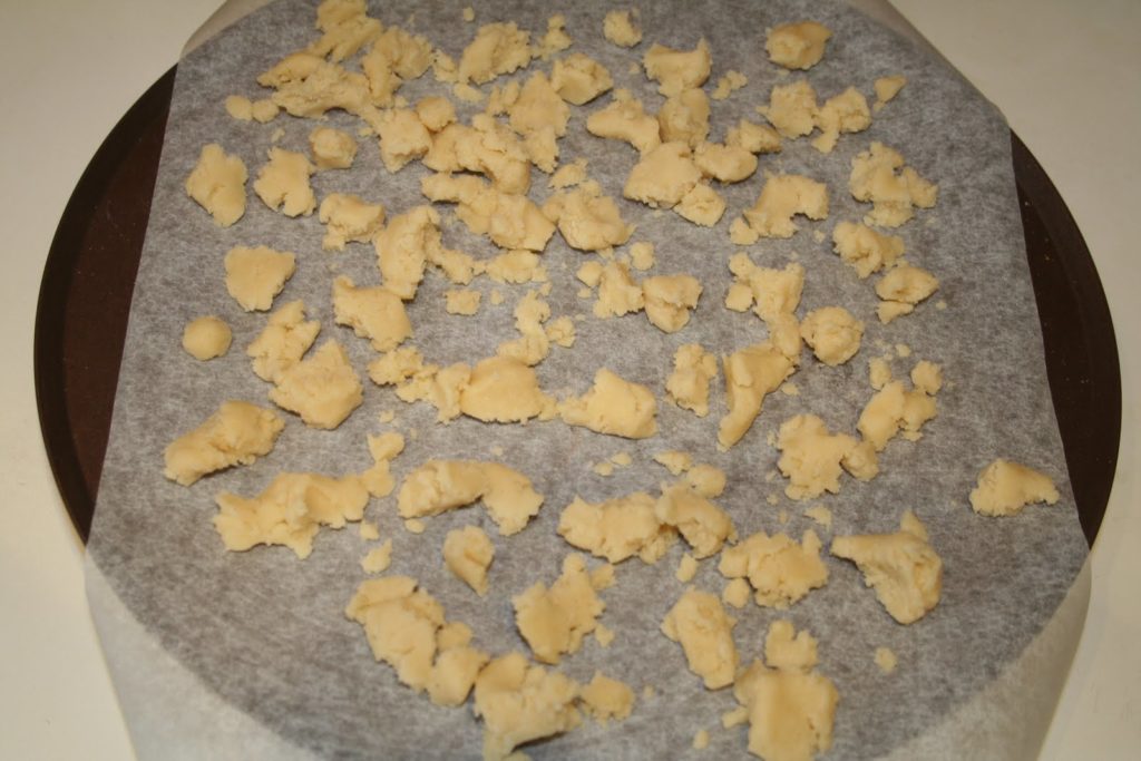 - Réunir la pâte en une boule, et prélever de façon grossière des morceaux dans celle-ci. Répartir ces morceaux sur une plaque à pâtisserie. Enfourner pour 30 minutes.