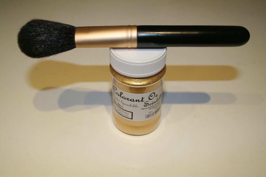 - poudre alimentaire or et un pinceau à maquillage neuf