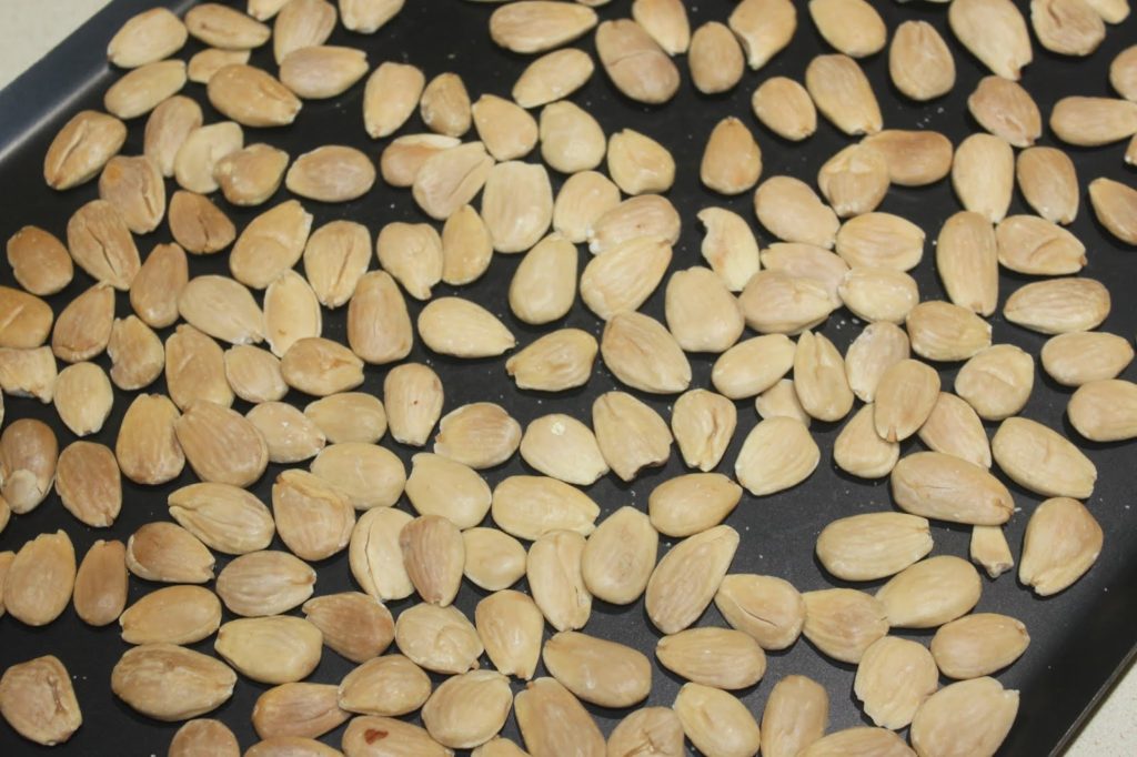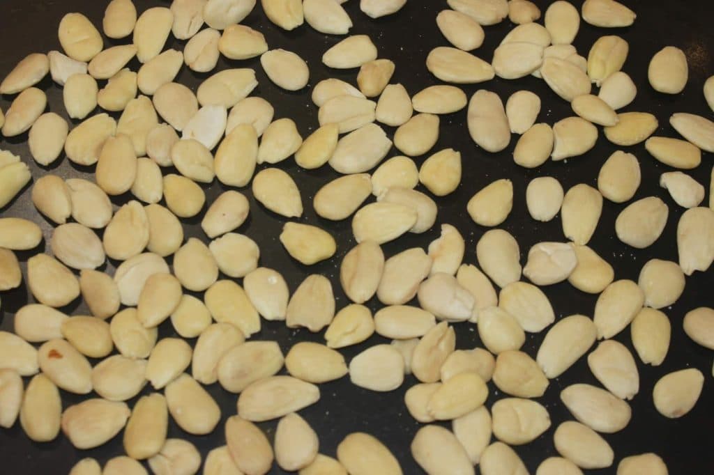 Tostar las almendras enteras en el horno durante 15 minutos a 170°C.