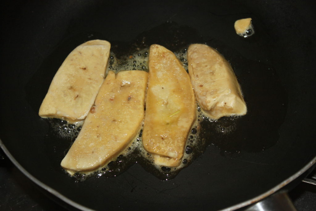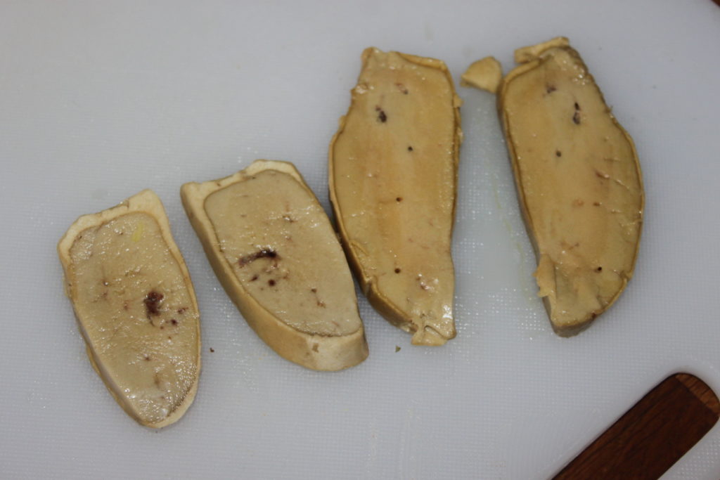 Coupez les tranches de foie gras cru. J’avais le mien au congélateur depuis un moment !