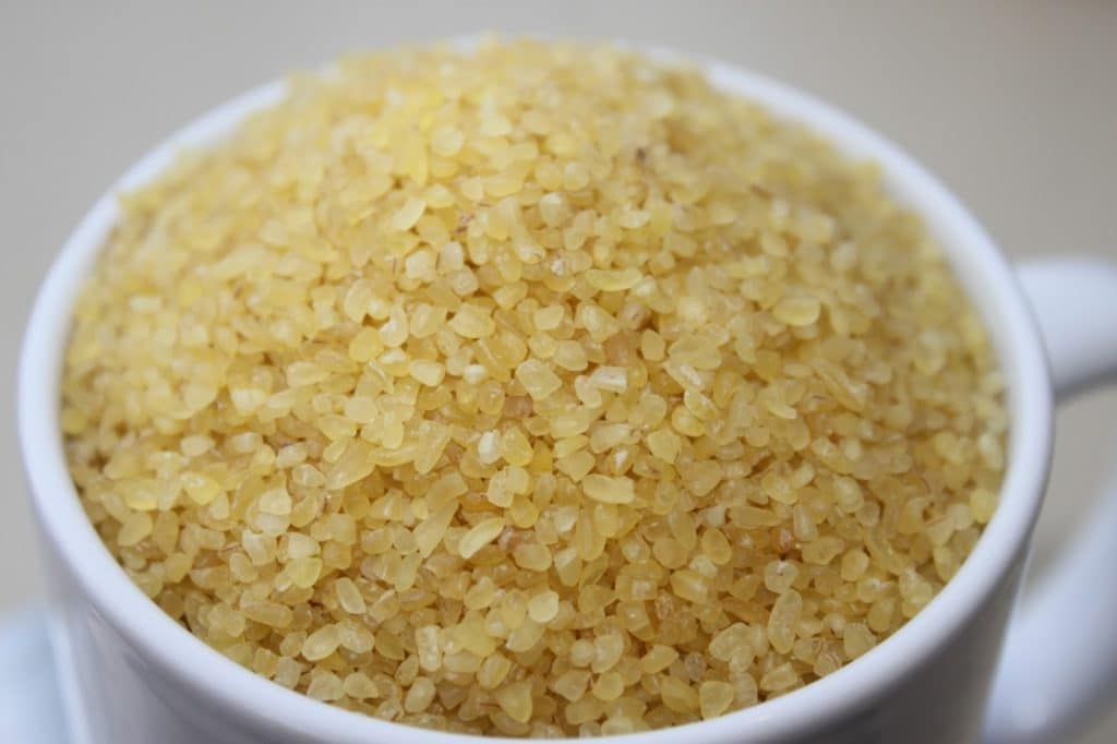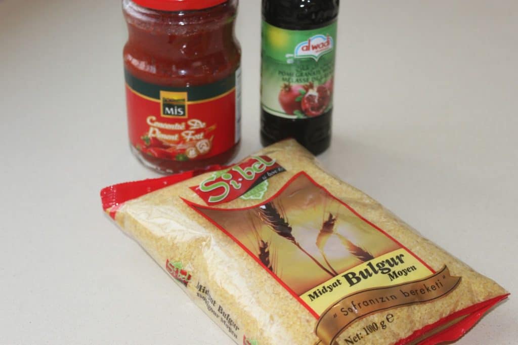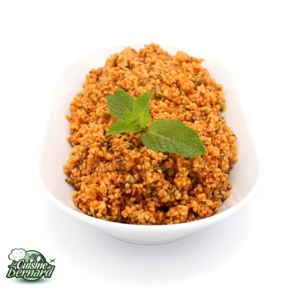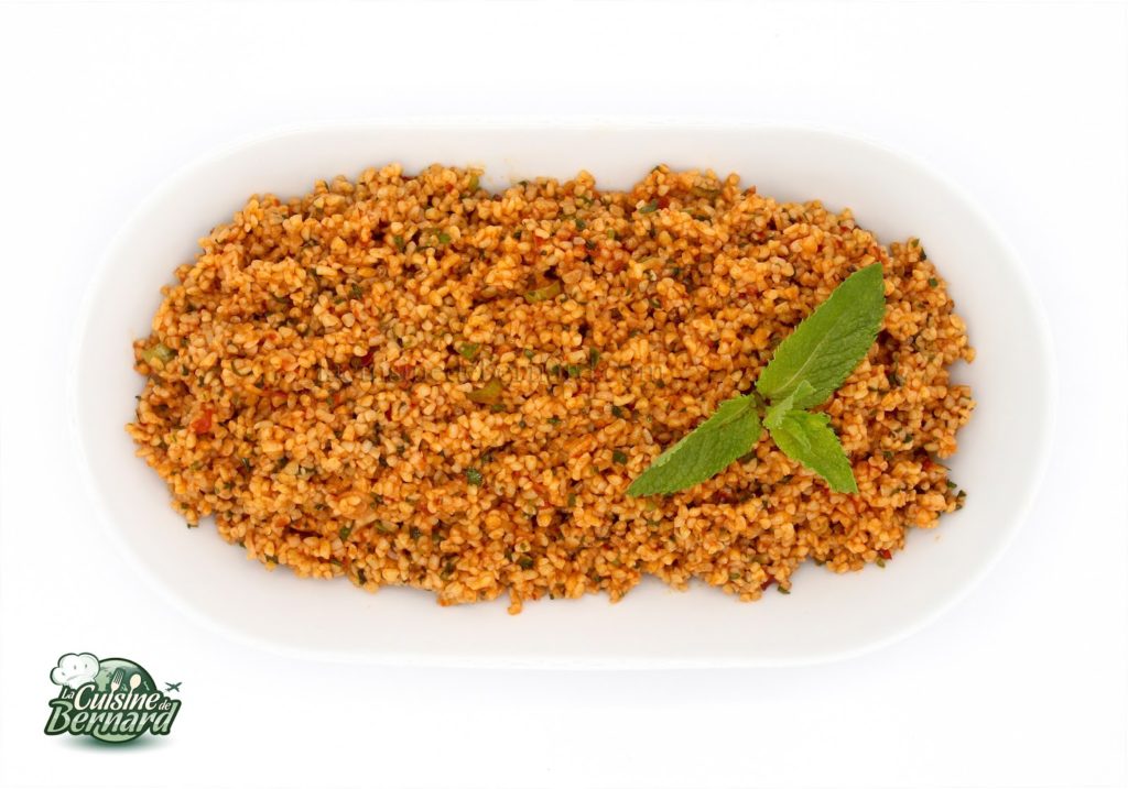 - Voici les produits un peu particuliers de la recette. Le boulgour, mais que l’on trouve vraiment facilement.