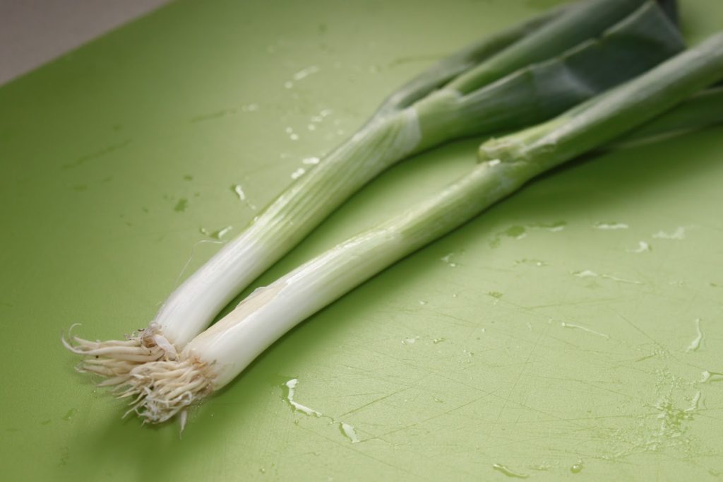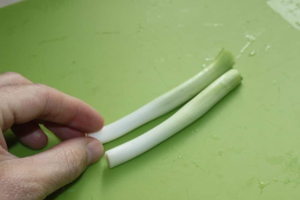 - Pour les oignons nouveaux, enlevez les racines et la partie la plus verte.
