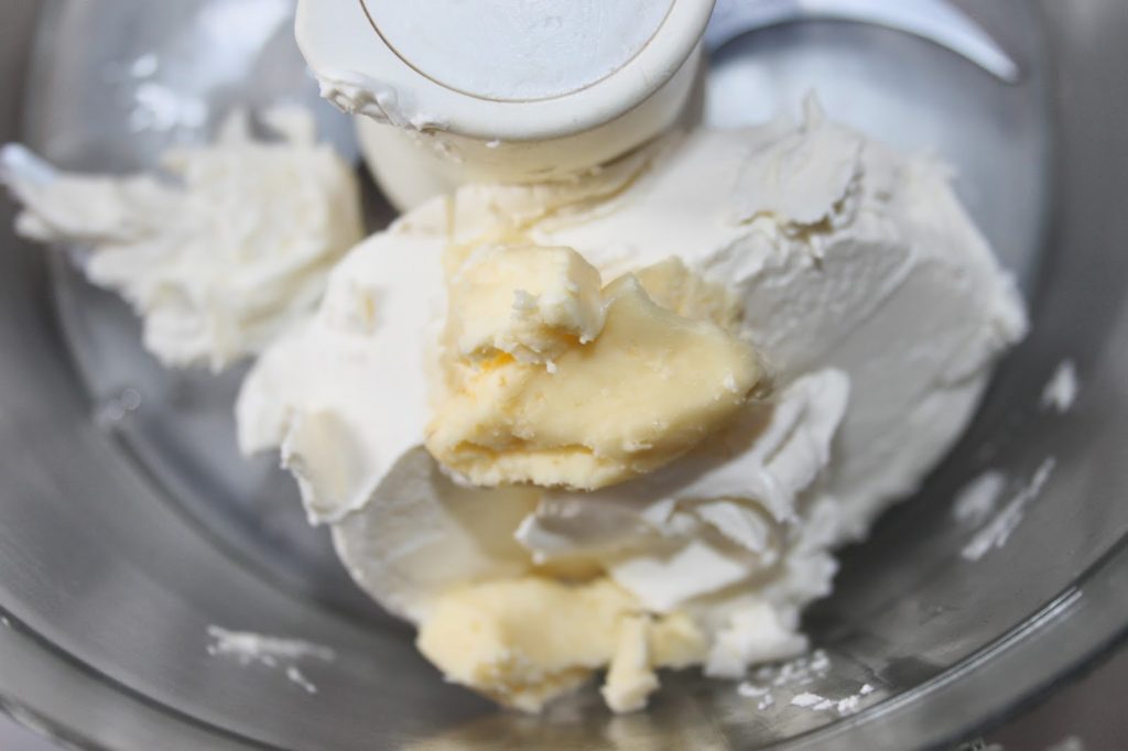 - Mettez le cream cheese et le beurre demi-sel dans le mixeur.