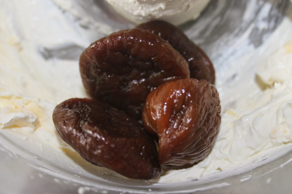 - Ajoutez les figues séchées moelleuses. Si vous mettez des figues très sèches, cela va voir du mal à se mixer… Ajoutez l’huile. Vous pensez peut être que cela est superflu entre le cream cheese et le beurre, mais l’huile va permettre de « détendre » la pâte obtenue.