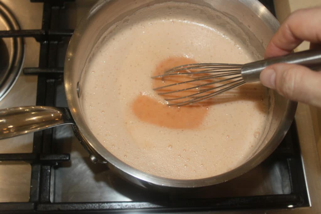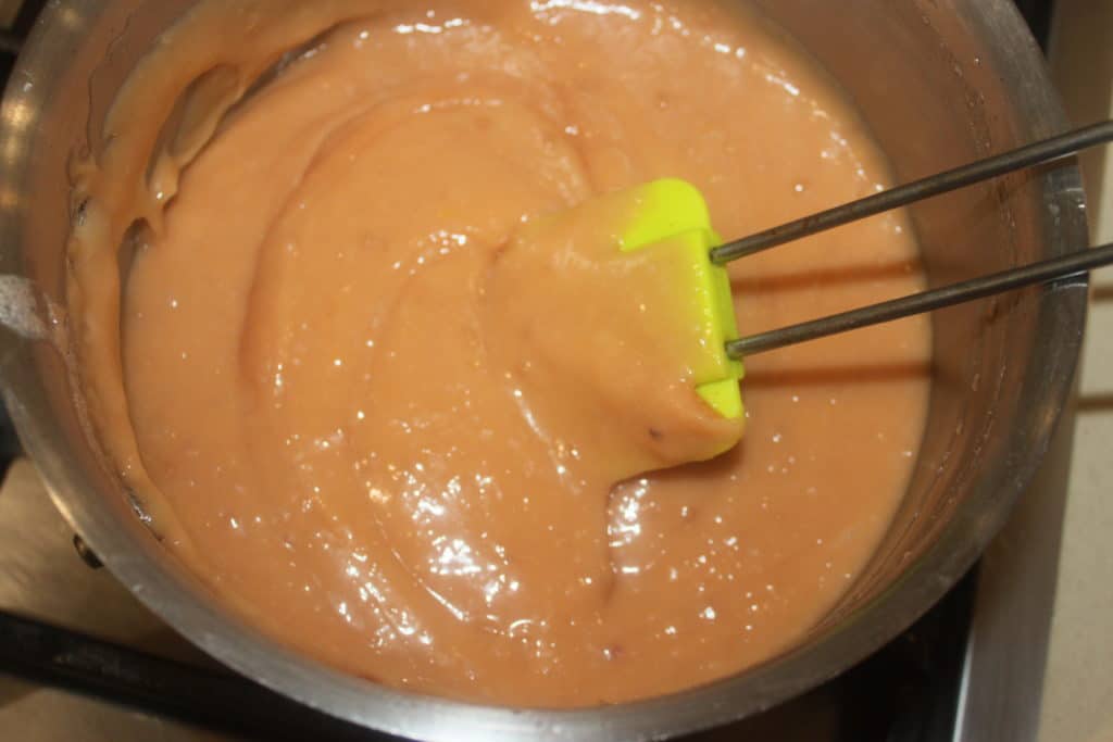 - Remettez sur feu moyen et mélangez sans arrêter jusqu’à ce que la crème épaississe.