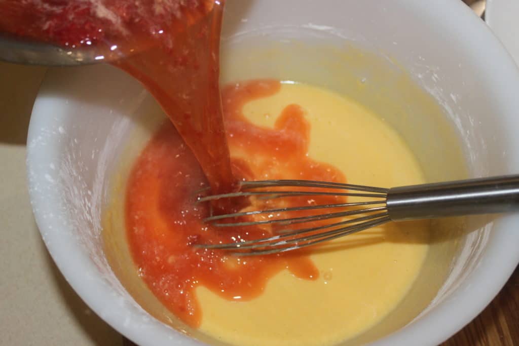 - Mélangez à part dans un récipient, les jaunes, la maïzena et le reste du sucre. Quand le liquide frémit, versez dans le récipient tout en mélangeant.