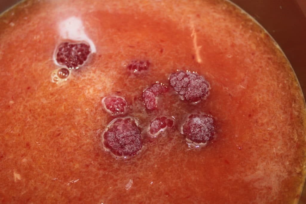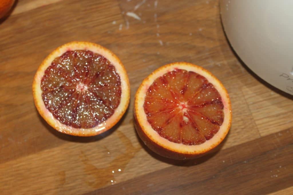 - Pressez les oranges sanguines pour avoir 350g de jus