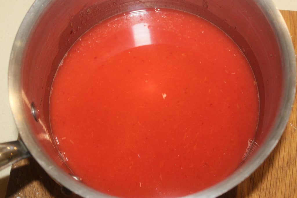 Coupez le feu et ajoutez le beurre en morceau. Mélangez bien pour l’incorporer tandis qu’il fond. Ajoutez aussi la demi-feuille de gélatine essorée et mélangez soigneusement.