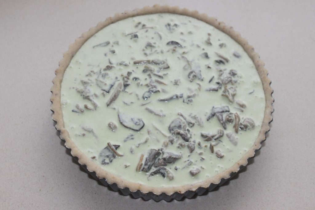 Pour TARTE AUX CHAMPIGNONS, PESTO DE NOISETTES ET PANCETTA de 21cm de diamètre sur 3,5cm de hauteur :