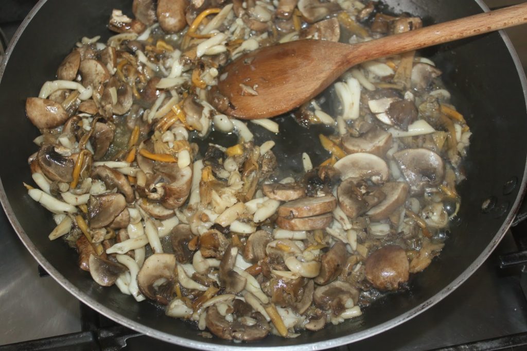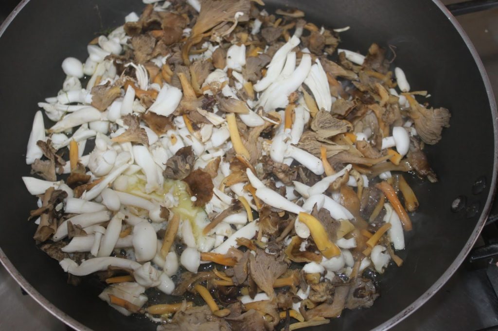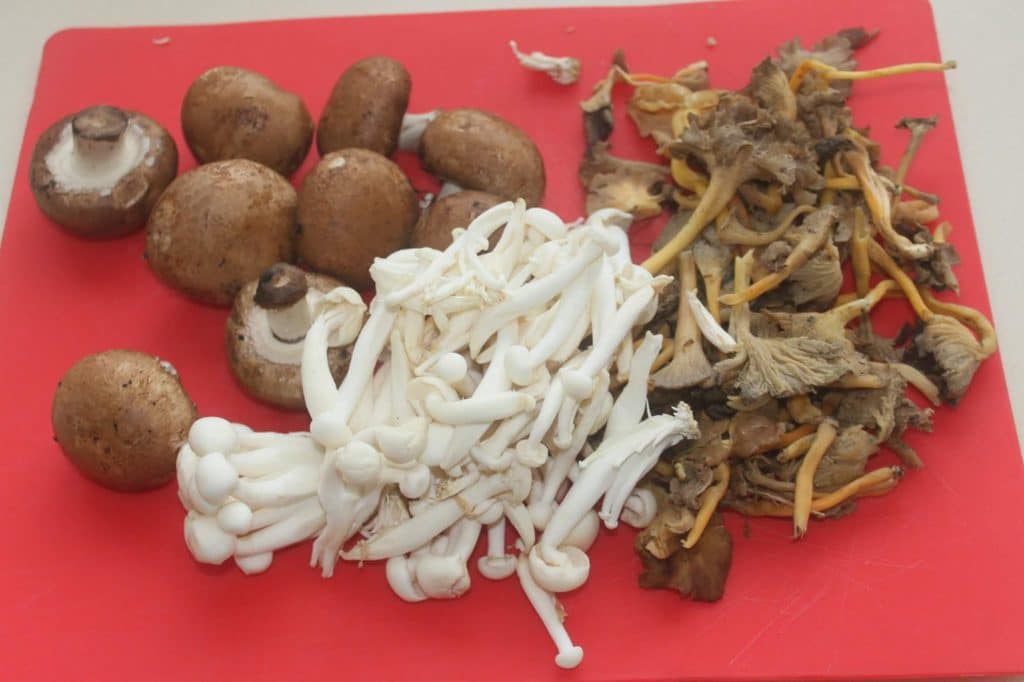 - Pour cette recette, j’ai pris des champignons rosés, des chanterelles et des shimejis.