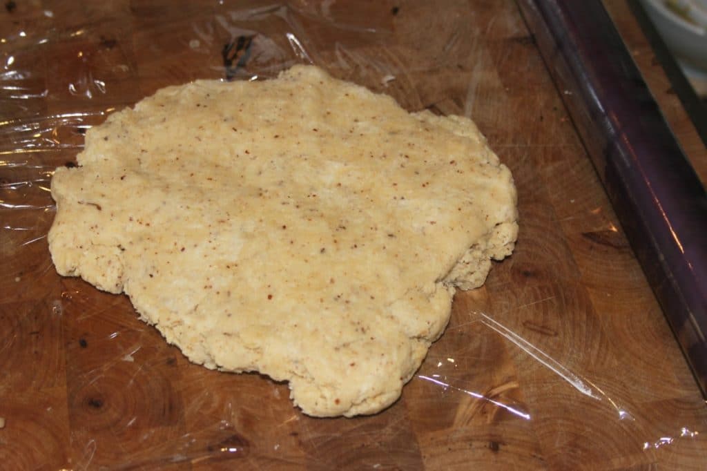 - Mettez à plat sur un film étirable (pour faciliter le travail avec le rouleau), emballez bien puis mettez au frais le temps de la suite de la recette.