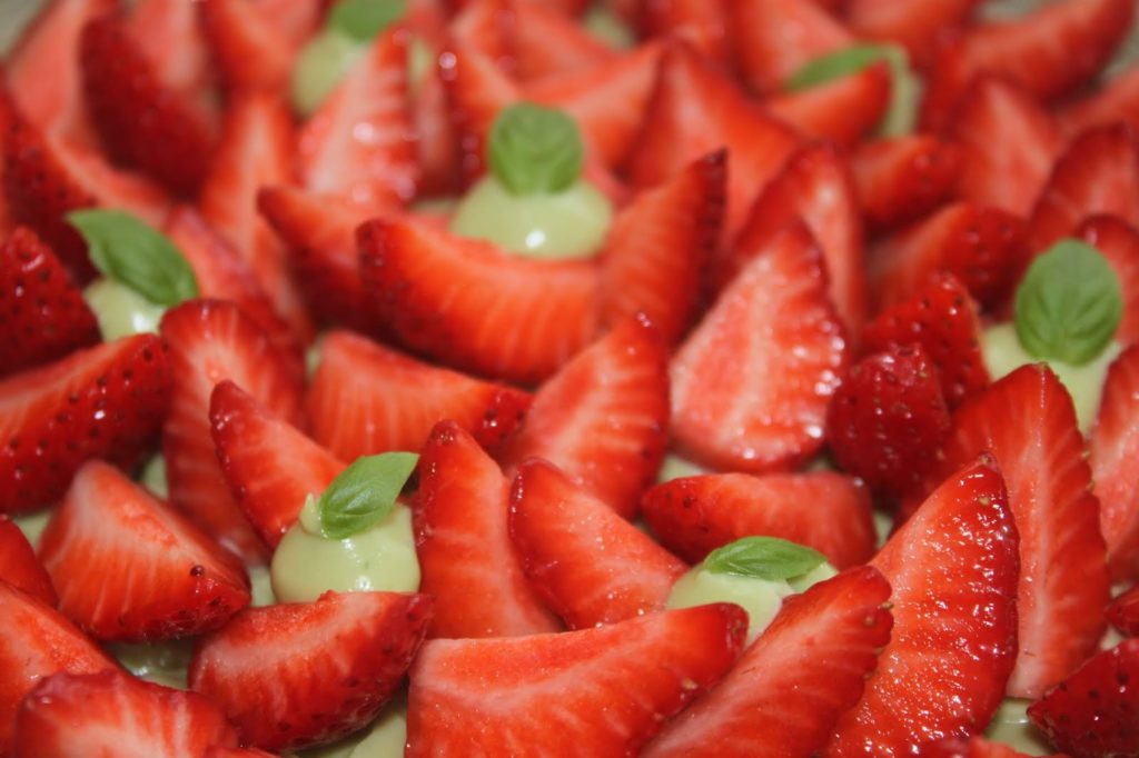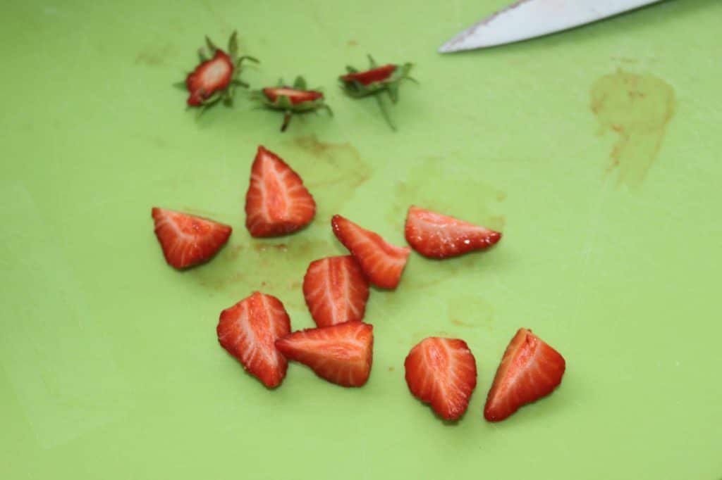 Pour cette tarte, prenez de très bonnes fraise ! Cela parait évident, mais je le répète ! Équeutez-les et coupez-les en 4.
