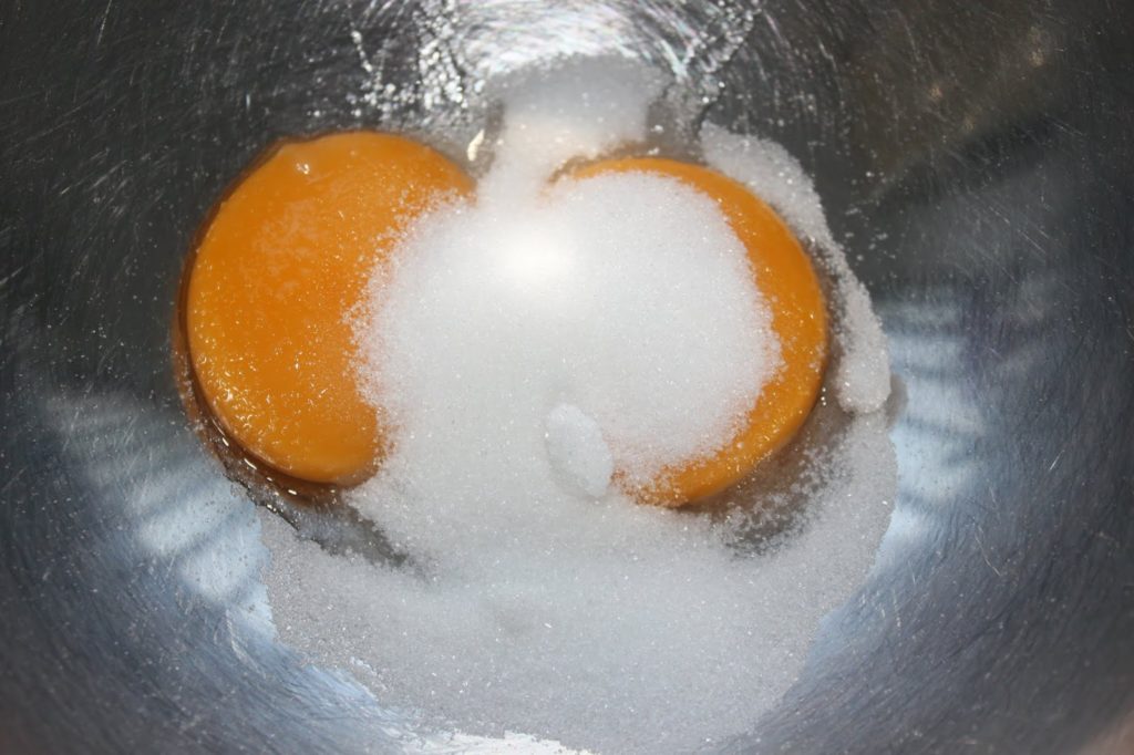 - Placez les 35g de jaunes d’œuf et le sucre dans un récipient.