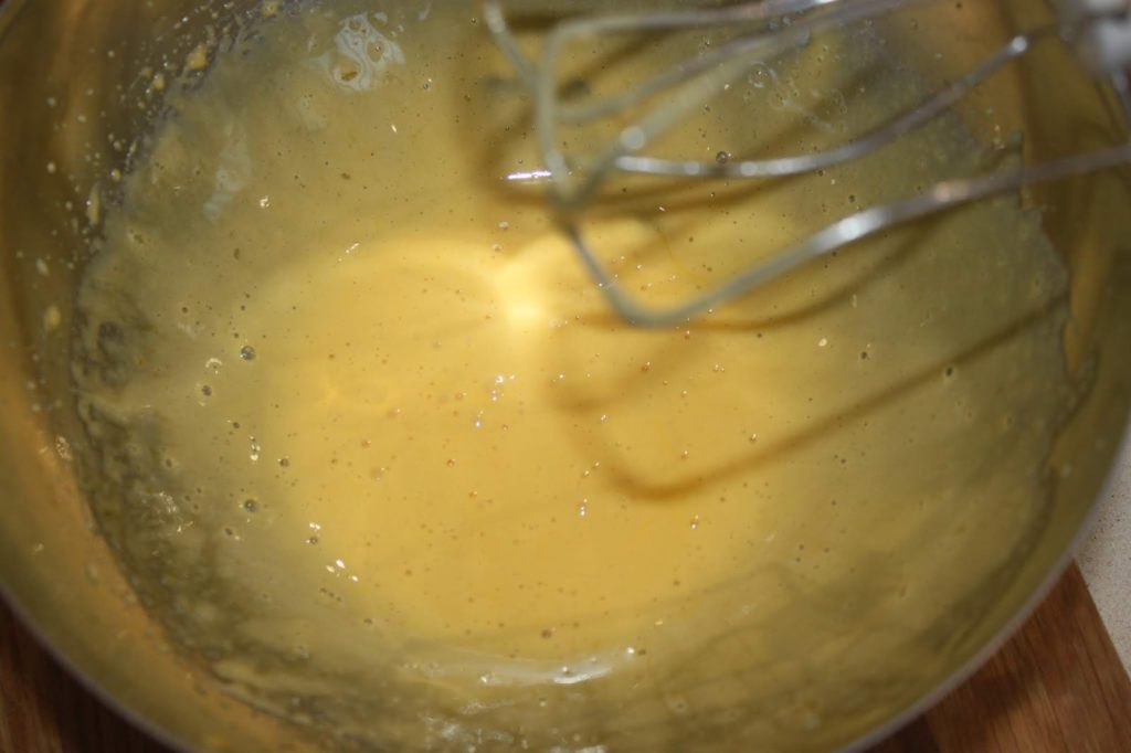- Mélangez au fouet pour blanchir le plus possible. Cela ne va pas blanchir beaucoup car il n’y a pas beaucoup de sucre.
