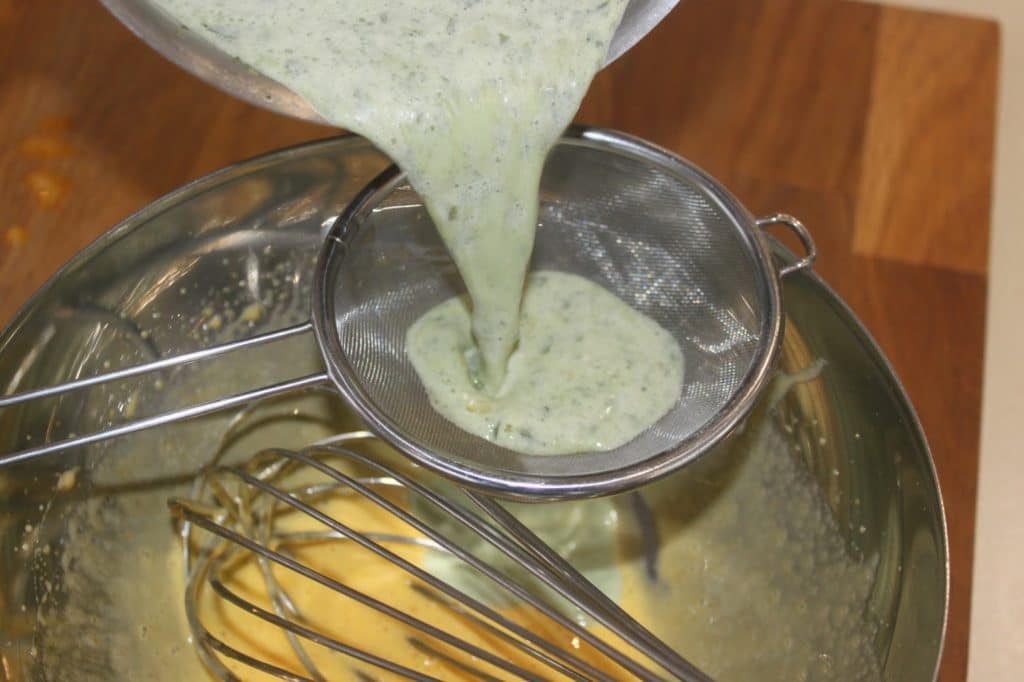 - Quand le contenu de la casserole frémit, versez le sur les jaunes en filtrant dans un passe thé.