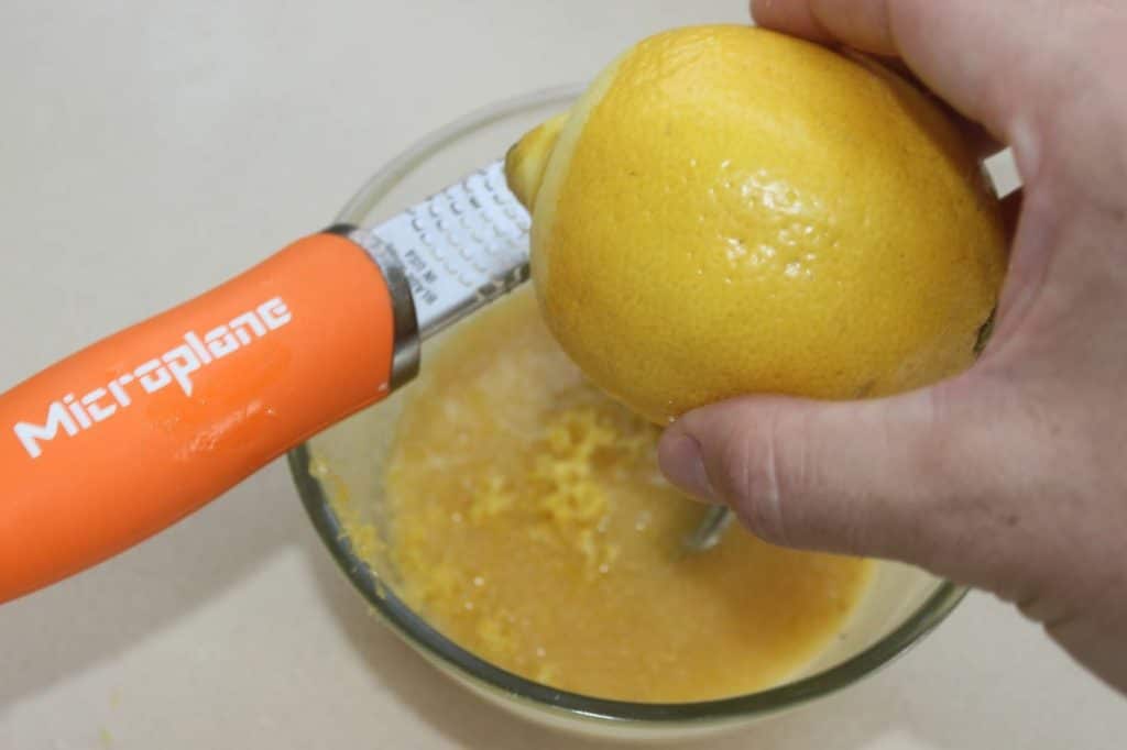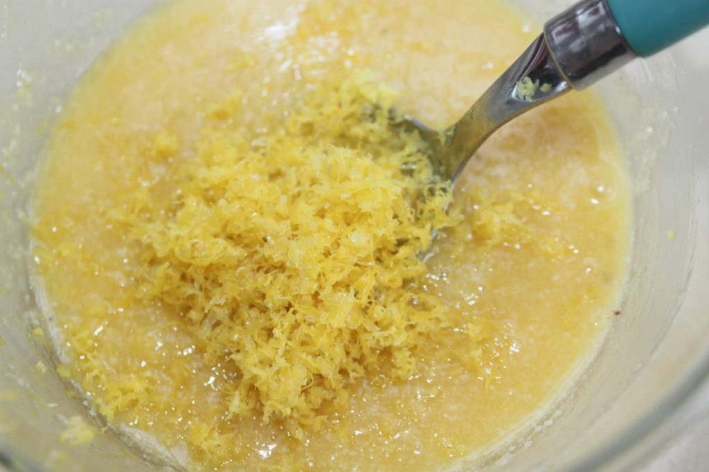- Mettez la pâte dans un film étirable au frais pour la nuit.Pour la crème d’amande au citron : mélangez dans un bol, le beurre fondu, le sucre glace, la poudre d’amande et les 30g d’œuf. Ajoutez le zeste du citron.