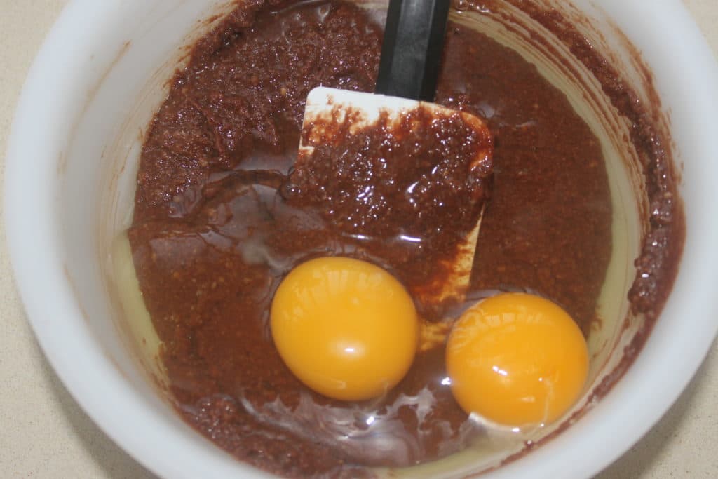 Ajoutez aussi les 110g d’œuf et mélangez bien.