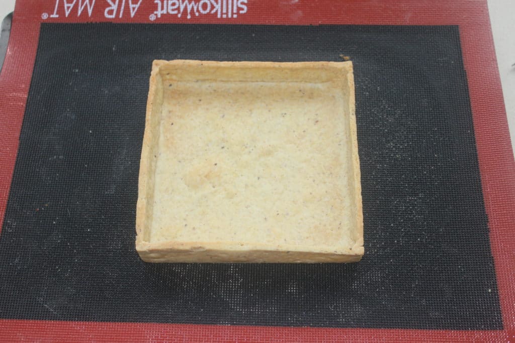 Préparez la pâte sucrée, comme dans ma recette de tarte aux fraises citron et basilic (lien ICI) en remplaçant juste la poudre d’amande par de la poudre de noisette.