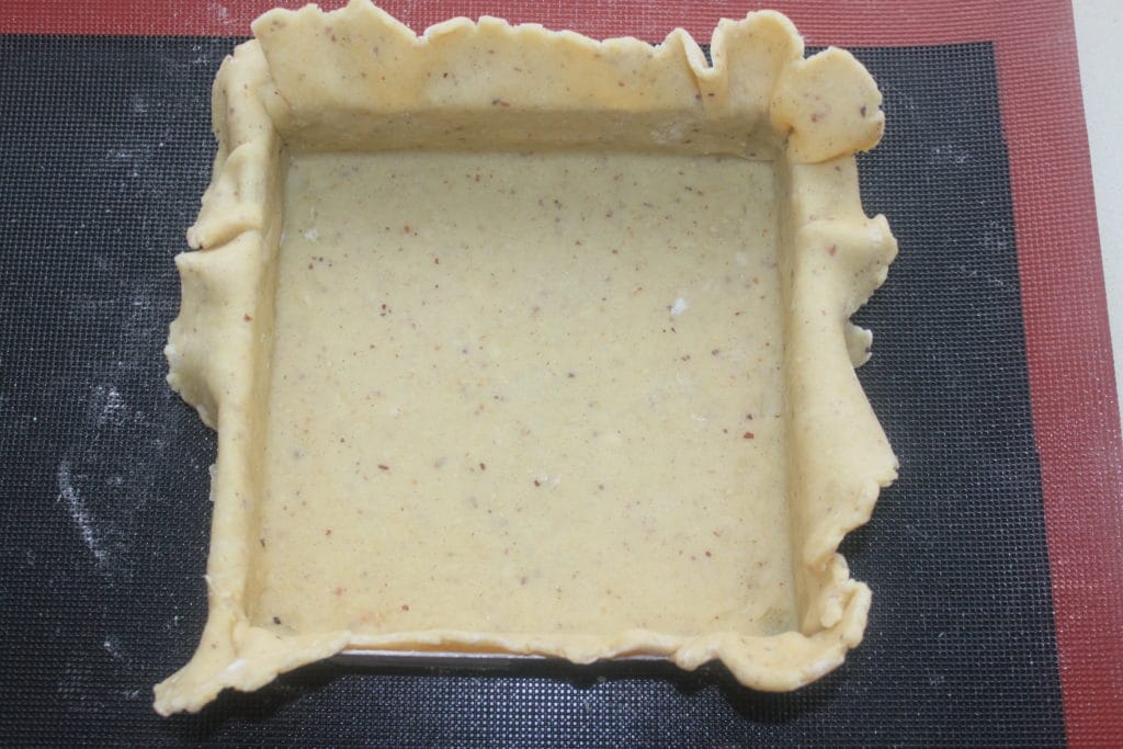 J’ai pris ici un cadre carré, mais vous pouvez prendre un moule à tarte classique de 20cm de diamètre.