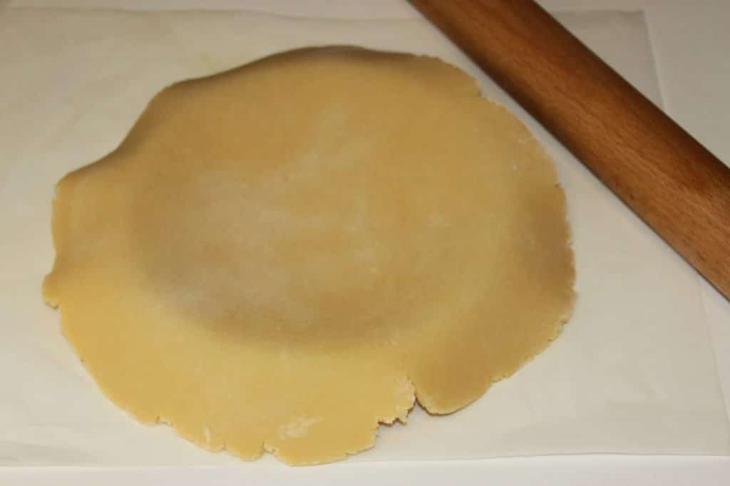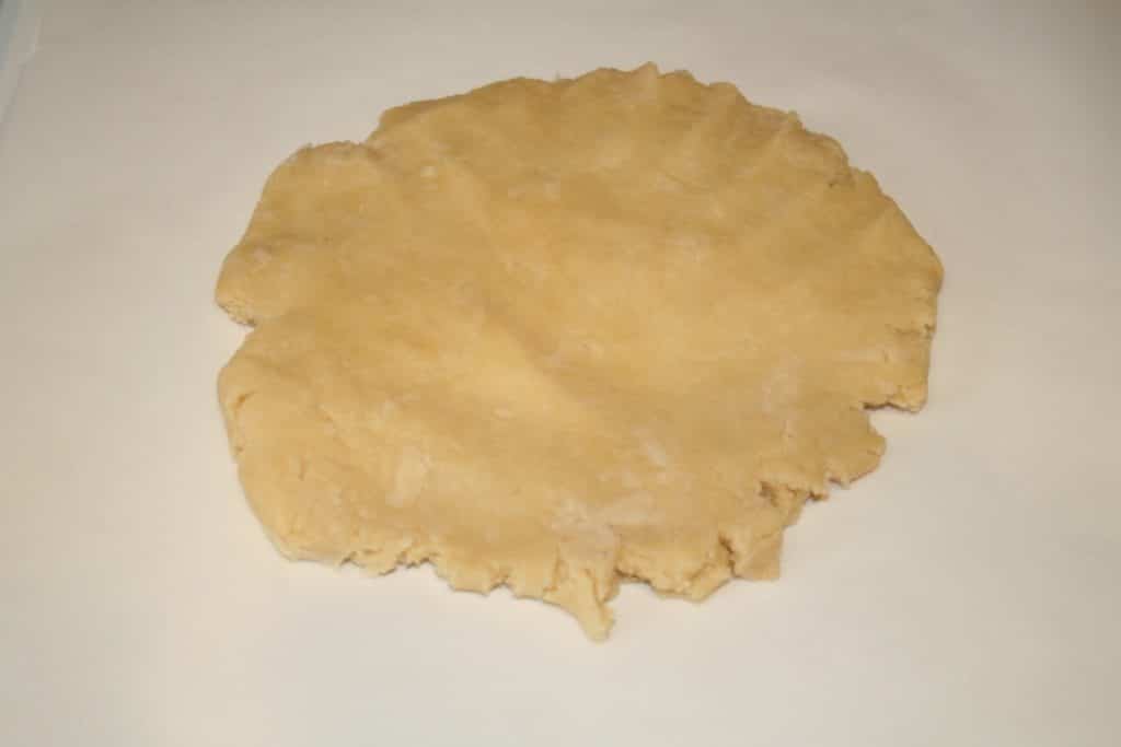 - Si il fait chaud chez vous, mettez au frais pour que la pâte soit manipulable. Posez la pâte étalée sur le cercle, lui-même posé sur le papier sulfurisé. N’oubliez pas de graisser l’intérieur de votre cercle.