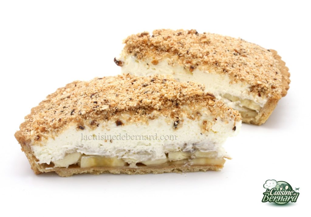 Tarte banane coco noisettes, chantilly citron vert