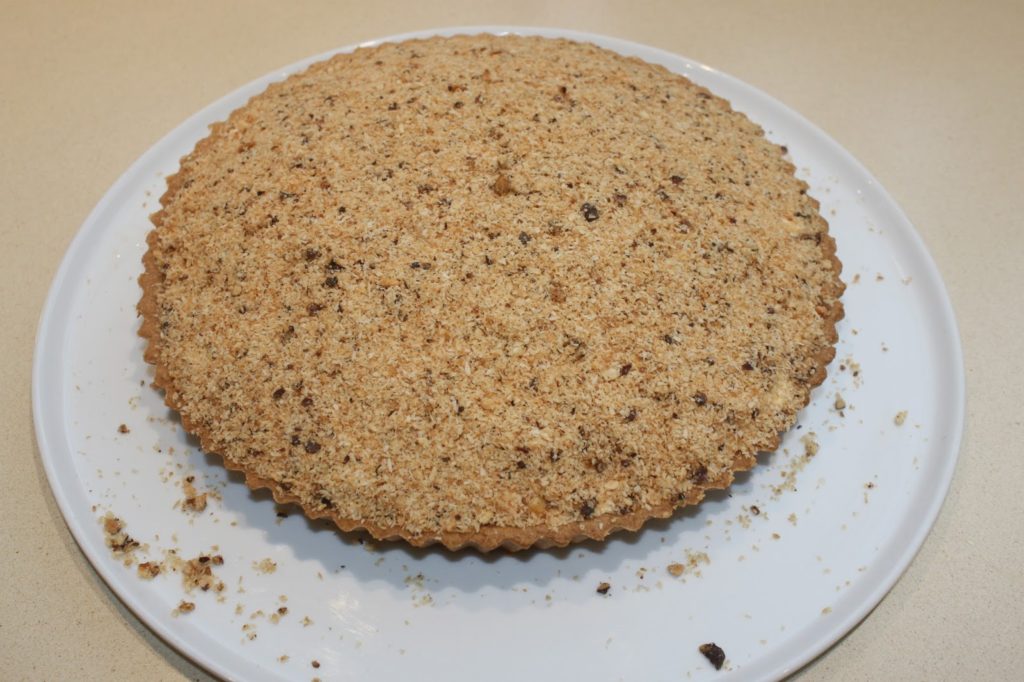 - Avec une spatule, étalez-la en une forme bombée jusqu’au bord de la tarte.