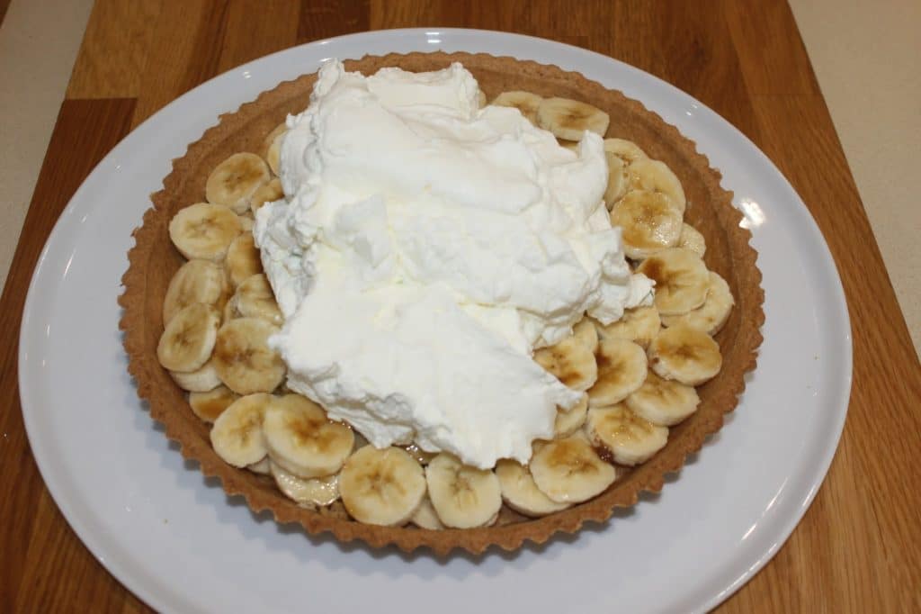 - Versez-la sur la tarte, sur les bananes.