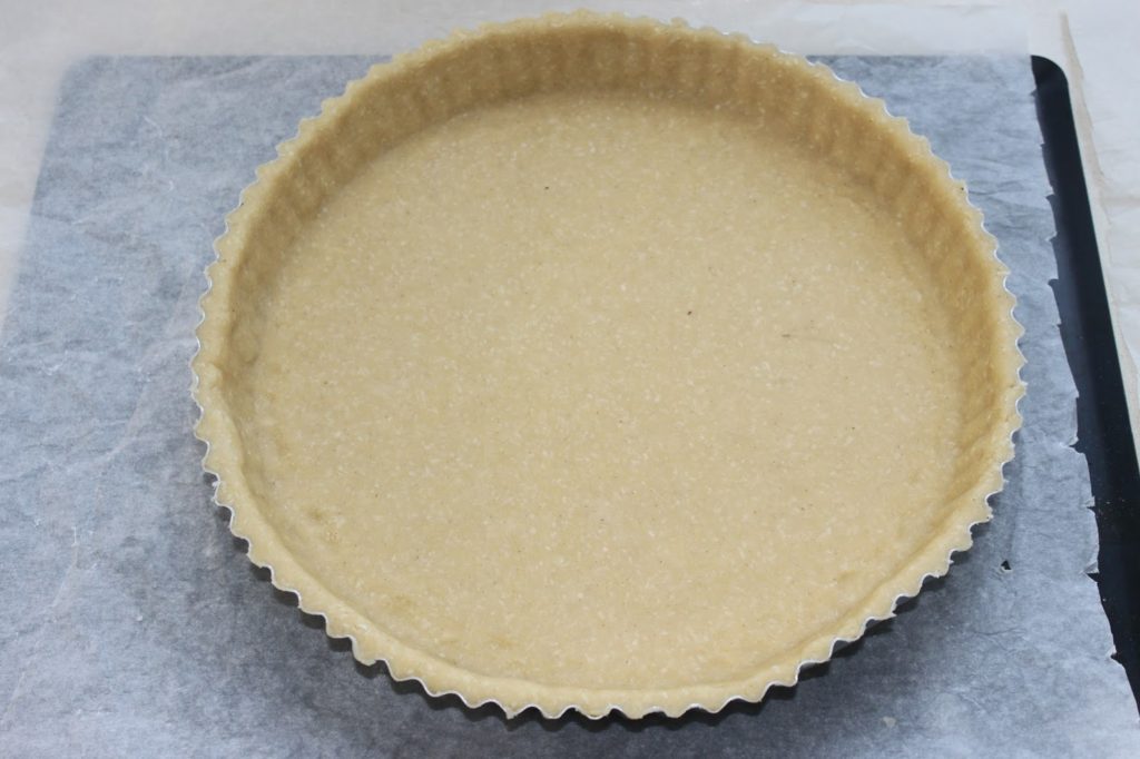 Foncez votre moule à tarte. J’utilise ici une moule à tarte à fond amovible de 25cm.
