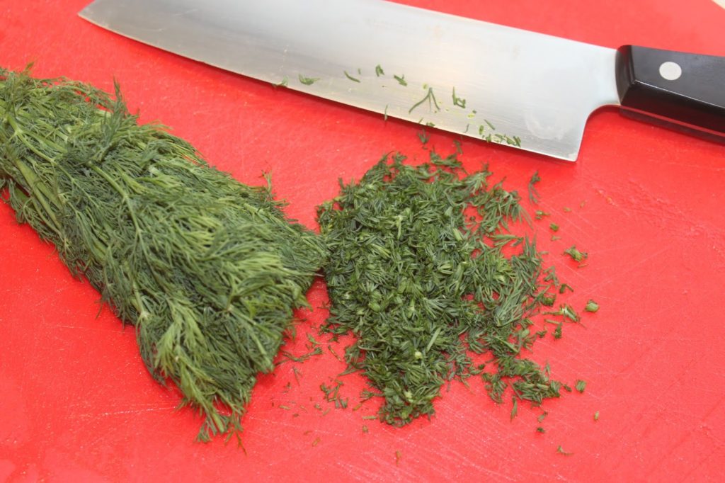 - Hachez finement de l’aneth pour en avoir deux cuillerées à soupe que vous mettrez dans la migaine.